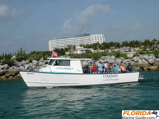 A group of divers heads out the inlet for a morning dive in Port Lucaya, Grand Bahama Island.